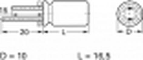 Electrolytic capacitor, insulated aluminum can, type Frolyt EKS. Radial connecting wires for vertical mounting on PCBs. Compliant with DIN IEC 60384-1 Rated voltage 25 VDC.